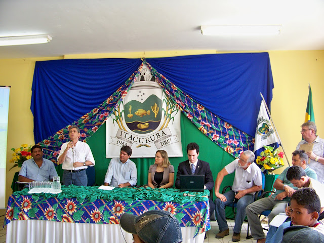 Aproximadamente 200 pessoas compareceram ao auditório da Secretaria de Educação do município de Itacuruba (PE), local de realização da audiência no dia 09.11 (quarta-feira) que contou com forte participação da comunidade, com destaque para intervenção de jovens estudantes de escolas públicas municipais. O evento teve a Coordenação do representante do Ministério Público de Pernambuco, Dr. André Silvani (CAOPMA), e pelo Coordenador Geral do Fórum Interinstitucional de Defesa da Bacia Hidrográfica do Rio São Francisco em Pernambuco, Marcelo Teixeira (Codevasf) e pelos membros do Fórum representando o DNOCS (Kátia Távora e Fernanda Cristina), Agência Condepe/Fidem (Wellington Eliazar e Paulo da Fonte), CPRH (João Moraes), Fundaj (João Suassuna), SEMAS (Marcus Carvalho), Cipoma (Sargento Paulino) e Fundarpe (Augusto Passhaus Neto). Se fizeram presentes a audiência, a Prefeitura Municipal, a promotora de justiça de Itacuruba, Liana Menezes Santos, a Diocese de Floresta, Povos Indígenas da região, Articulação Popular São Francisco Vivo, Comissão Pastoral da Terra, Irpaa, Comitê da Bacia do São Francisco, além de órgãos que tem desenvolvido estudos e pesquisas na região, a exemplo da Fundação Joaquim Nabuco - Fundaj. A audiência foi convocada pelo poder público (MPPE/CAOPMA) que diz ter tido conhecimento da possibilidade de instalação da Usina Nuclear em Itacuruba apenas através da imprensa. “O município ainda não foi informado, fiquei sabendo pelos jornais e pelo relatório da Eletronuclear disponível em um blog da região”, declarou o prefeito do município, Romero Magalhães Lêdo (PSB) em sua fala de abertura dos trabalhos.