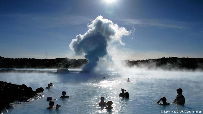 Um dos mais famosos pontos turísticos da Islândia é a Lagoa Azul (Bláa lónið, em islandês), um lago artificial próximo ao aeroporto de Reykjavík, que recebe eletricidade e é aquecido pela central geotérmica próxima. Tais usinas de energia são comuns no país, mas pouco conhecidas no resto do mundo. Para muitos dos banhistas da lagoa, é a primeira vez que ouvem falar dessa fonte energética.