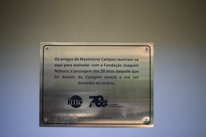 Em cerimônia nesta terça-feira (07), a Fundação Joaquim Nabuco homenageou o escritor Maximiano Campos, um dos intelectuais que ajudou a fundar a Fundaj. O evento simbolizou os 20 anos do falecimento, com uma placa colocada no Edifício Paulo Guerra, no campus Casa Forte.