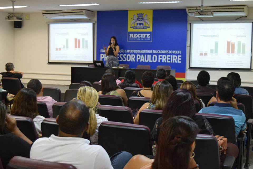 Analisando os dados da educação de Pernambuco e do Brasil, a doutora em Administração Pública e Governo Lara Simielli abordou formas de elaboração e acompanhamento do Planejamento Estratégico para o Setor Público. “Esse é um momento muito rico de troca. A gente pode falar sobre as dificuldades do planejamento nos municípios, mas pode também pensar em alternativas de atuação e em como fazer um planejamento baseado em evidências, baseado em dados e diagnósticos”, explicou.