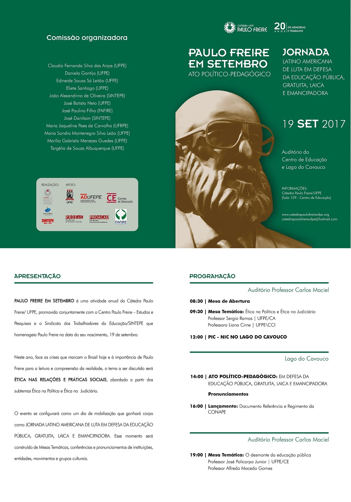Página inicial > Imprensa > Paulo Freire em Setembro, Ato Político- Pedagógico