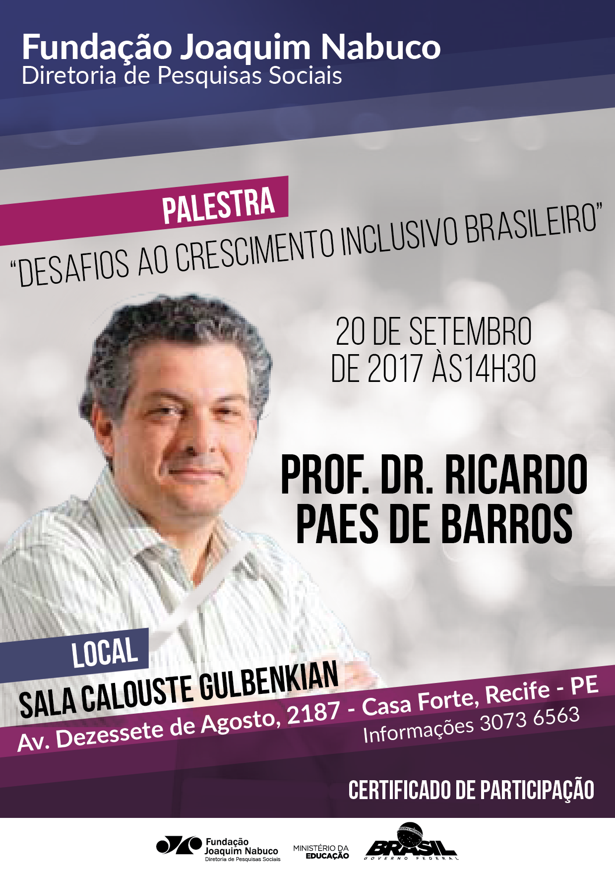 Crescimento inclusivo é tema de palestra do economista Ricardo Paes de Barros na Fundaj