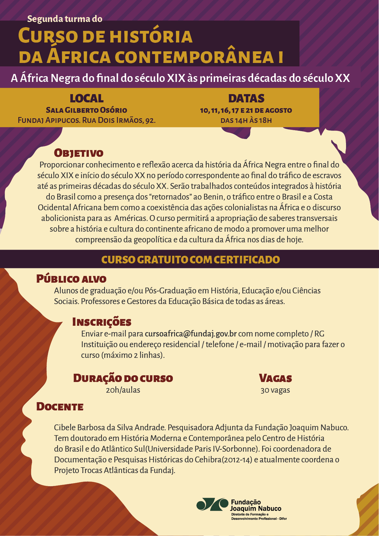 - Segunda turma do curso História da África Contemporânea I: a África Negra do final do século XIX às primeiras décadas do século XX