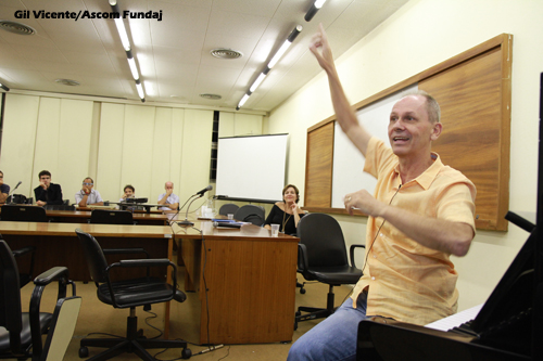 Wisnik pontuou vários trechos de sua palestra com exercícios práticos no piano, sendo ovacionado pela atenta plateia em diversos momentos.