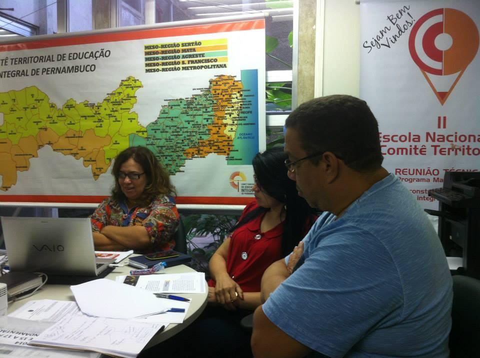 Com o intuito de discutir a implementação de ação do Programa Mais Educação direcionada a jovens de 15 a 17 anos que estão no ensino fundamental, o Comitê Territorial de Educação Integral em Pernambuco realizou, no dia 05 de setembro (sexta-feira), primeira oficina com coordenadores do Mais Educação da Secretaria Estadual de Educação e das Secretarias Municipais de Educação de Camaragibe, Joaboatão dos Guararapes, Altinho, Cabo de Santo Agostinho, Catende, Goiana, Bom Conselho e Recife.