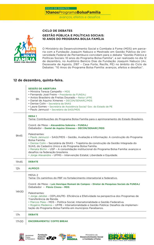 Página inicial > Imprensa > Ciclo de Debates "Gestão Pública e Políticas Sociais: 10 Anos do Programa Bolsa Família"