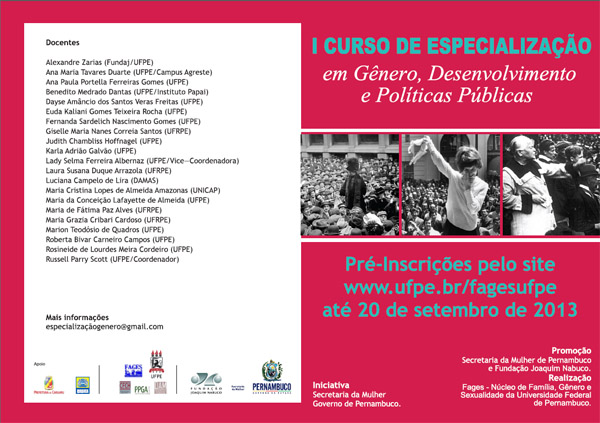 Página inicial > Imprensa > I Curso de Especialização em Gênero, Desenvolvimento e Políticas Públicas