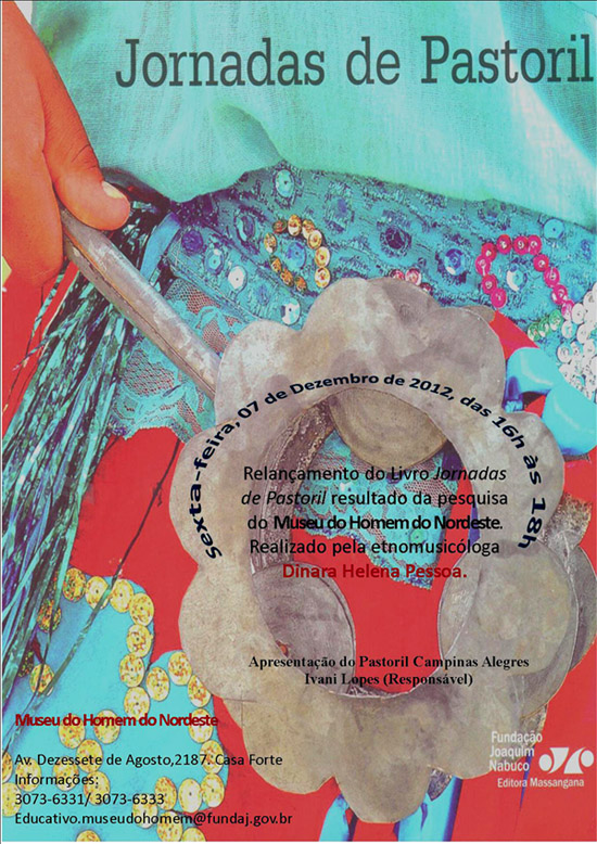 O bazar de NATAL vai oferecer os produtos do Programa de Formação do Jovem Artesão do Movimento Pró-Criança, parceiro da Fundaj desde 2004. Os objetos são feitos por jovens da região e utilizam elementos da tradição cultural para mudar leituras estéticas e, também, a vida de seus participantes - que passam a contar com uma nova profissão. No segundo dia de Bazar (sexta, 07/12) haverá lançamento do livro "Jornadas de Pastoril", da pesquisadora Dinara Helena Pessoa, baseado em pesquisa do Museu do Homem do Nordeste, com apresentação ao vivo do Pastoril Campinas Alegres. Confira os detalhes no cartaz abaixo.