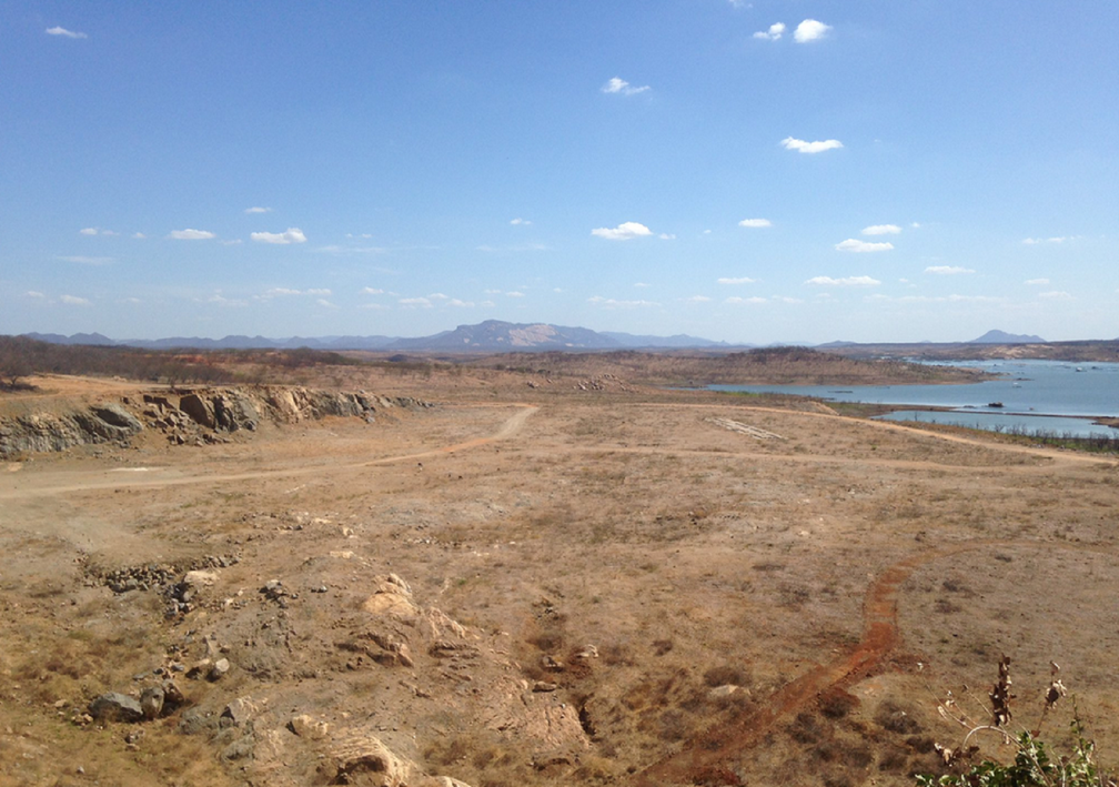 Onde havia água, a imensidão azul sem fim ficou um risco no chão e poeira. Situação atual assusta pescadores do Castanhão. (Foto: Gioras Xerez/G1 Ceará)