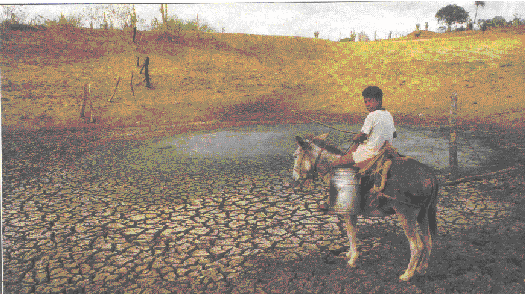 Pequeno açude no semi-árido. Com o constante uso da água e com a evapotranspiração acentuada, esses corpos de água secam invariavelmente.