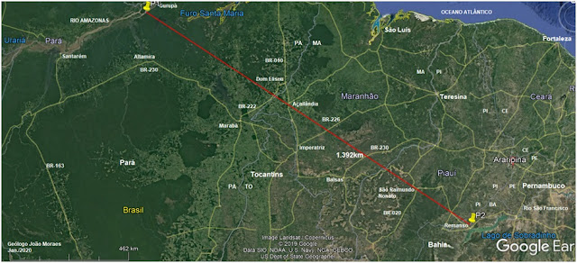 Mapa da Transposição do Rio Amazonas para a represa de Sobradinho (BA)