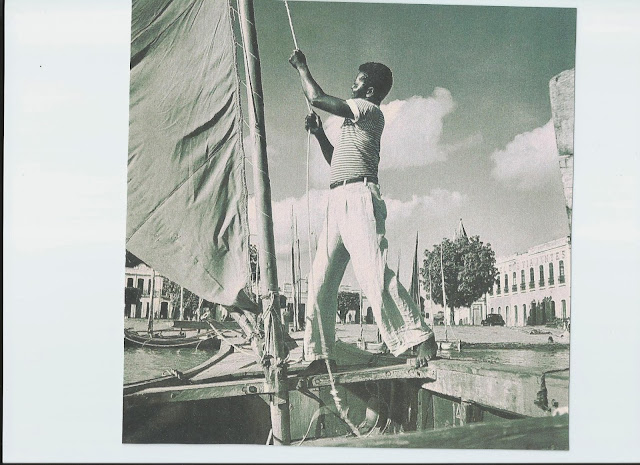 | Canoeiro içando a vela de sua "chata". (foto: arquivo Jornalista Nilo Sérgio Pinheiro) |