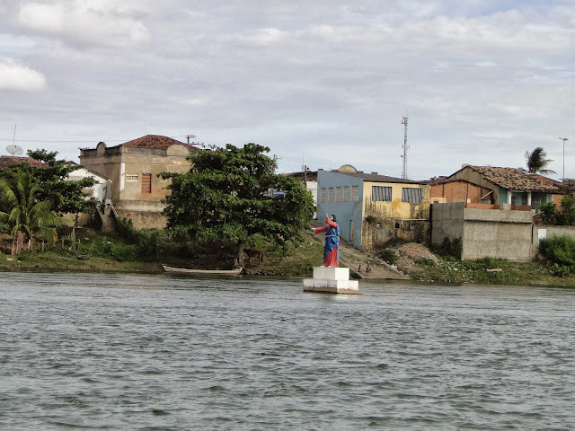 | Porto Real do Colégio em Alagoas, com a imagem de Bom Jesus dos Navegantes banhada pelas águas do "Velho Chico". (foto: autor) |