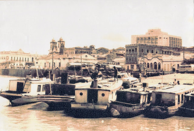 | Época em que o São Francisco era pujante, vendo-se, ao fundo, o Hotel São Francisco, na cidade de Penedo, Alagoas. (foto: arquivo jornalista Nilo Sérgio Pinheiro) |